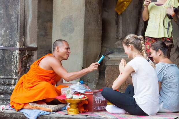 Отдыхала в этом году в Таиланде и поехала на экскурсию в местный монастырь. Там живут монахи, которым запрещено дотрагиваться до женщин. Прикосновение к представительницам прекрасного пола для них считается страшным грехом. Общение с мудрыми старцами происходило по такой схеме: монах просил посетительницу сесть перед ним на колени, а потом специальной метёлкой хлопал ей по голове и читал молитву.